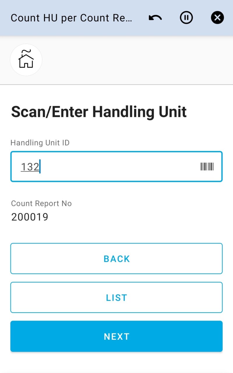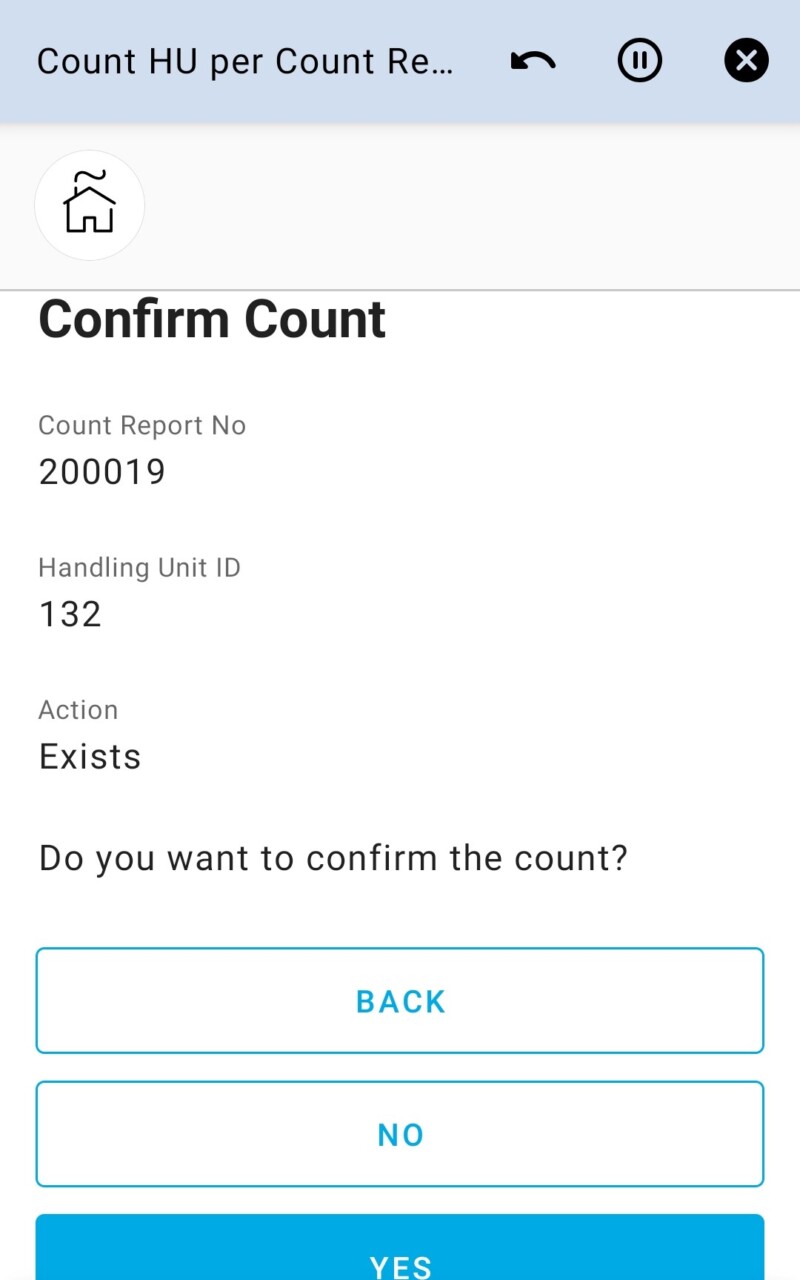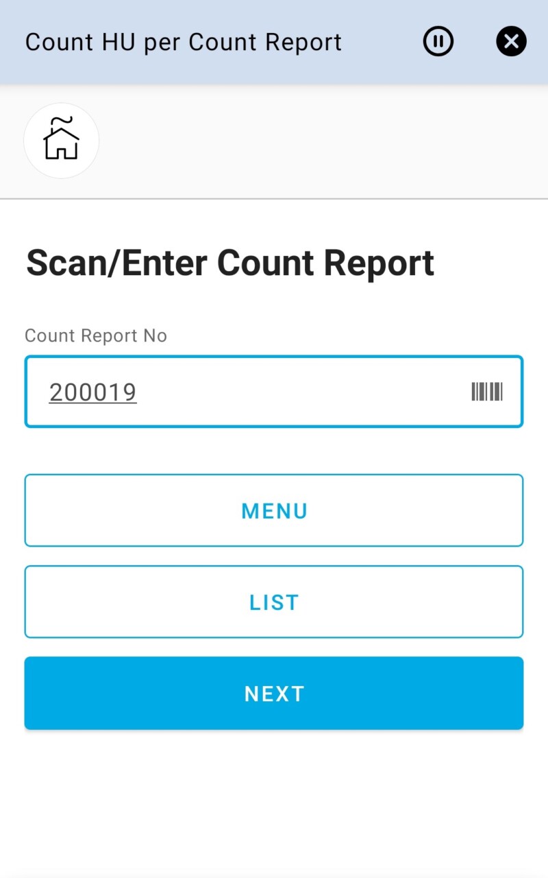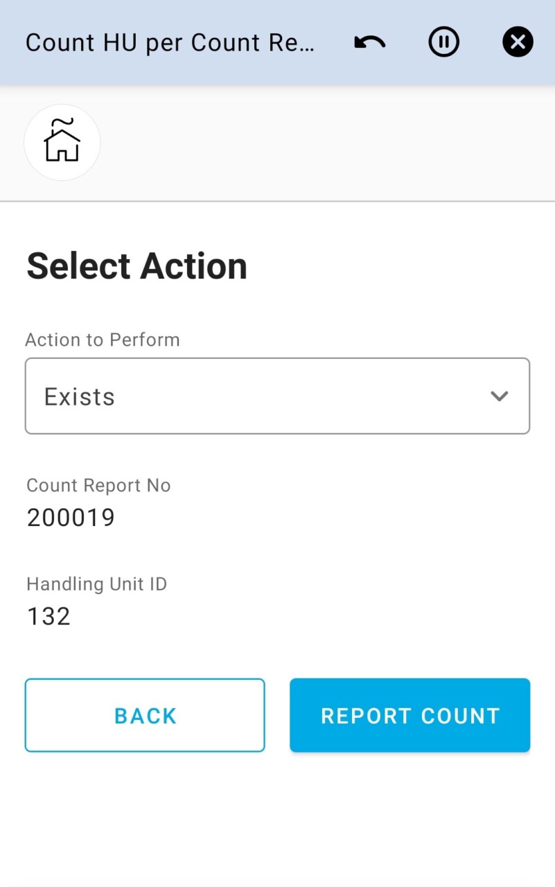 app can be used to update and confirm the count for a Handling Unit using a count report on the user’s default site. With this app, you can choose to perform one of the following.