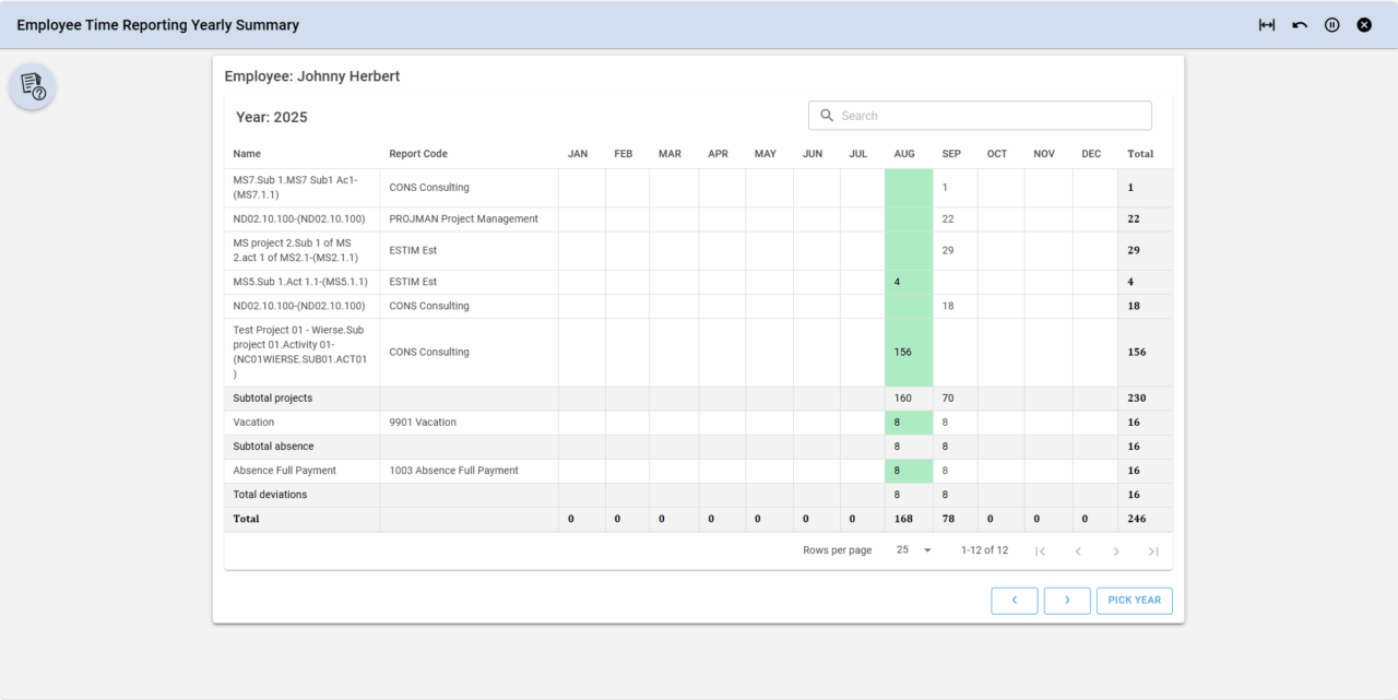 Employee Time Reporting Yearly Summary (IFS Applications)