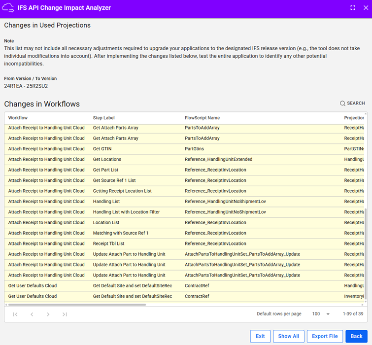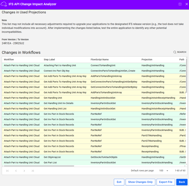 This is a Novacura hosted service designed to help users track and analyze changes in Projections and their related components within IFS Cloud using OData services. It enables efficient comparison between different IFS versions, allowing users to identify modifications across application packages and embedded assets.