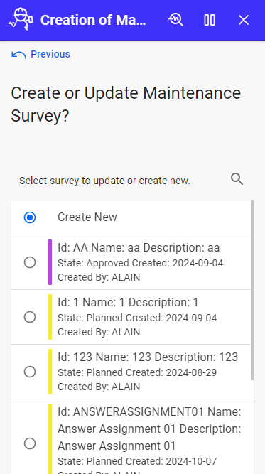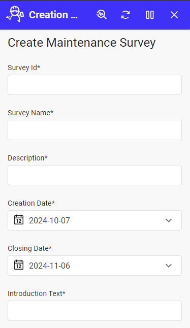- Creating New Surveys: Users can initiate new maintenance surveys tailored to specific needs.