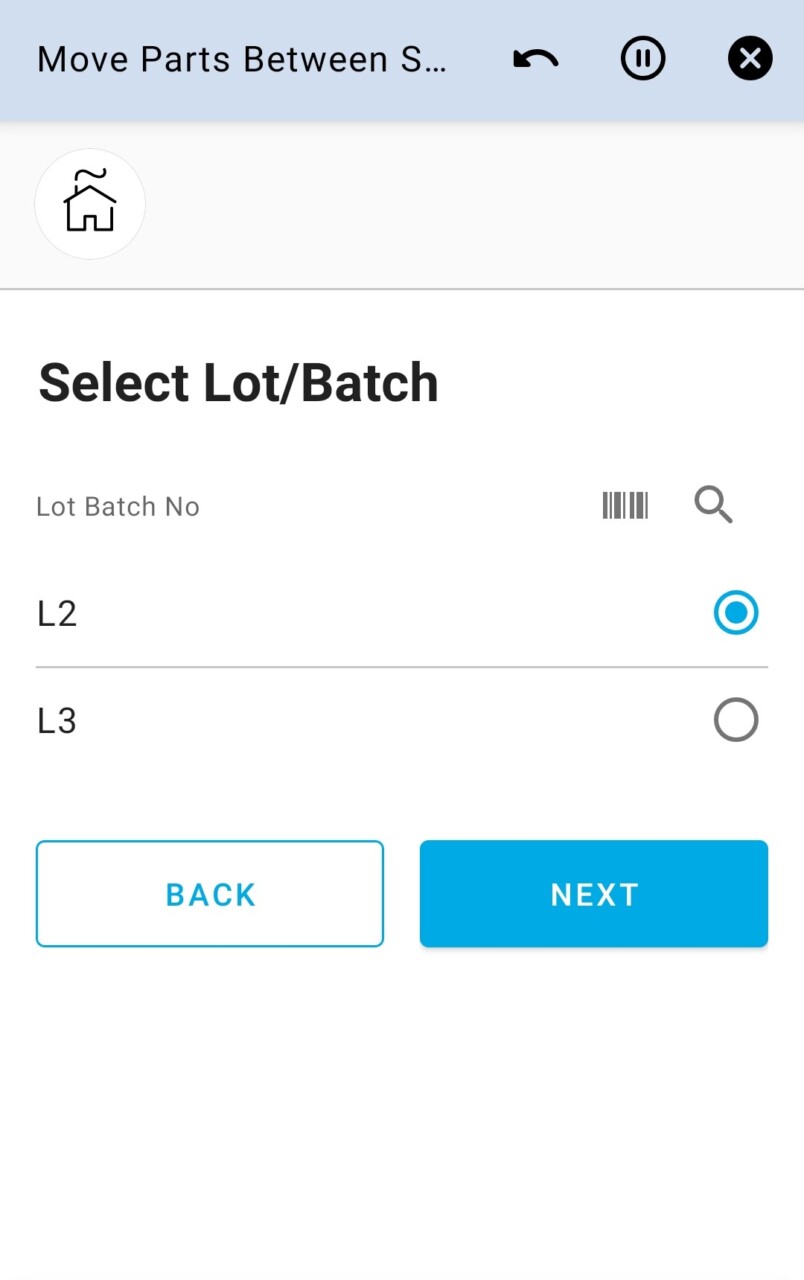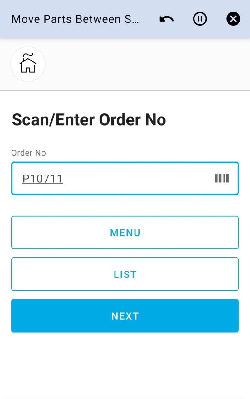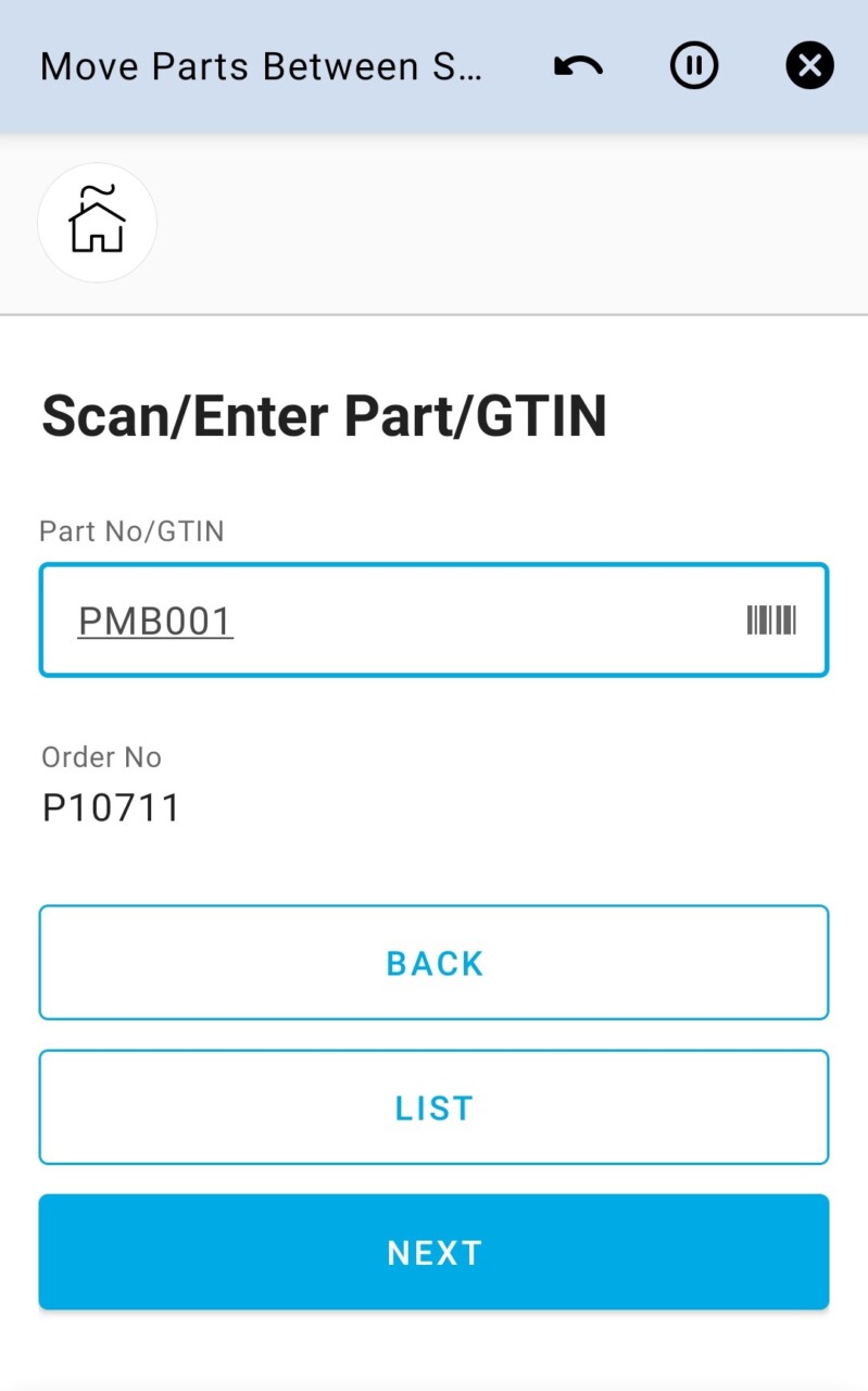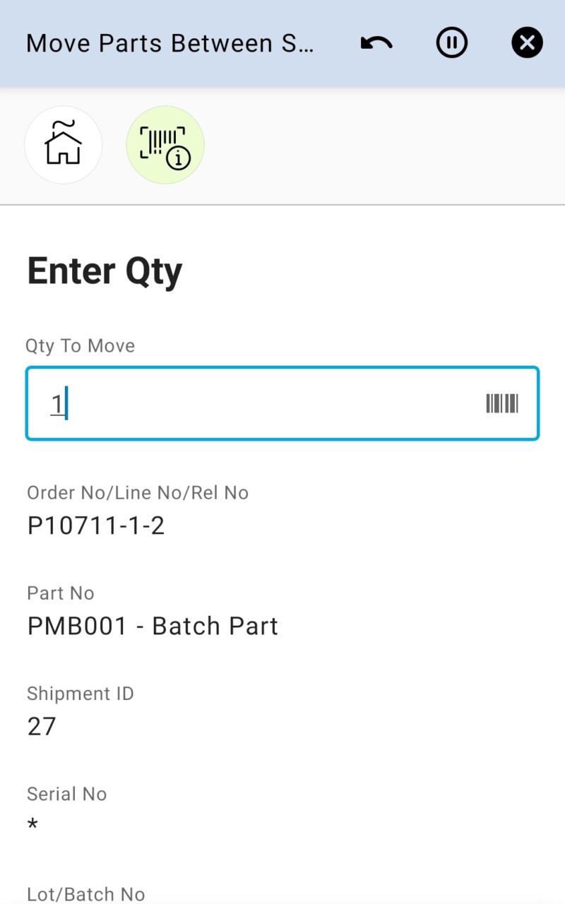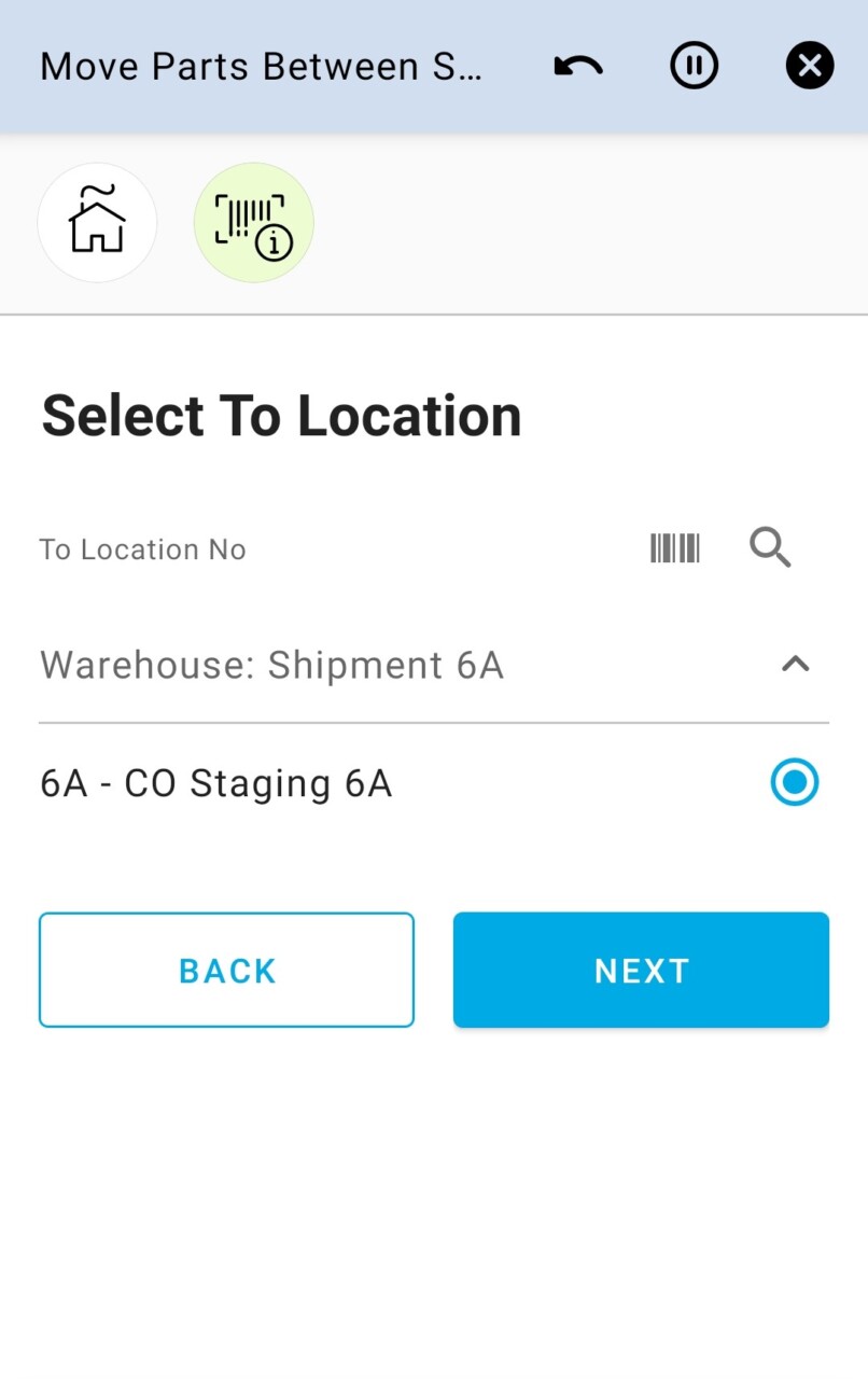 app can be used to move inventory parts between different shipment locations on the user’s default site.