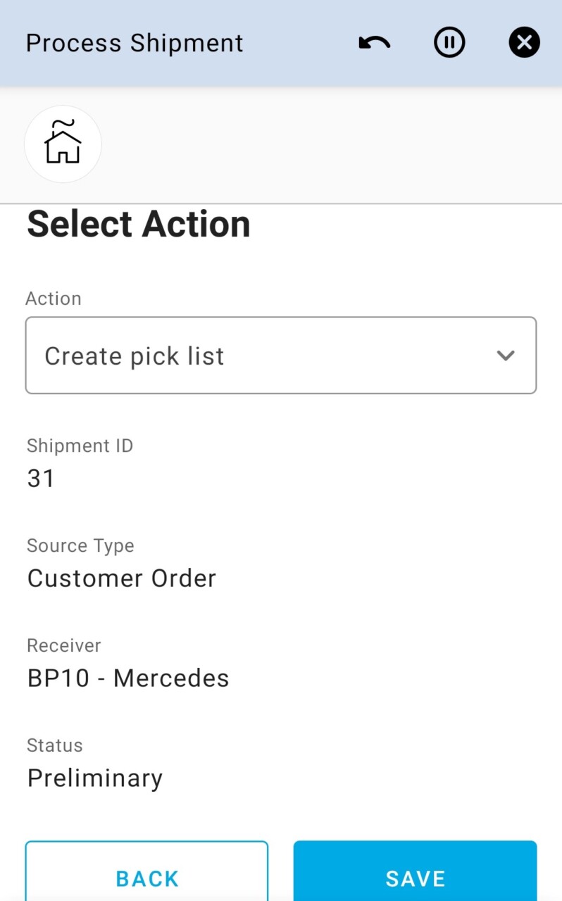 app can be used to process a shipment on the user’s default site. With this app it is possible to,
