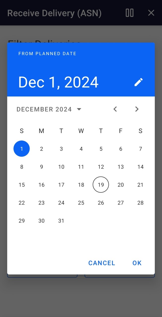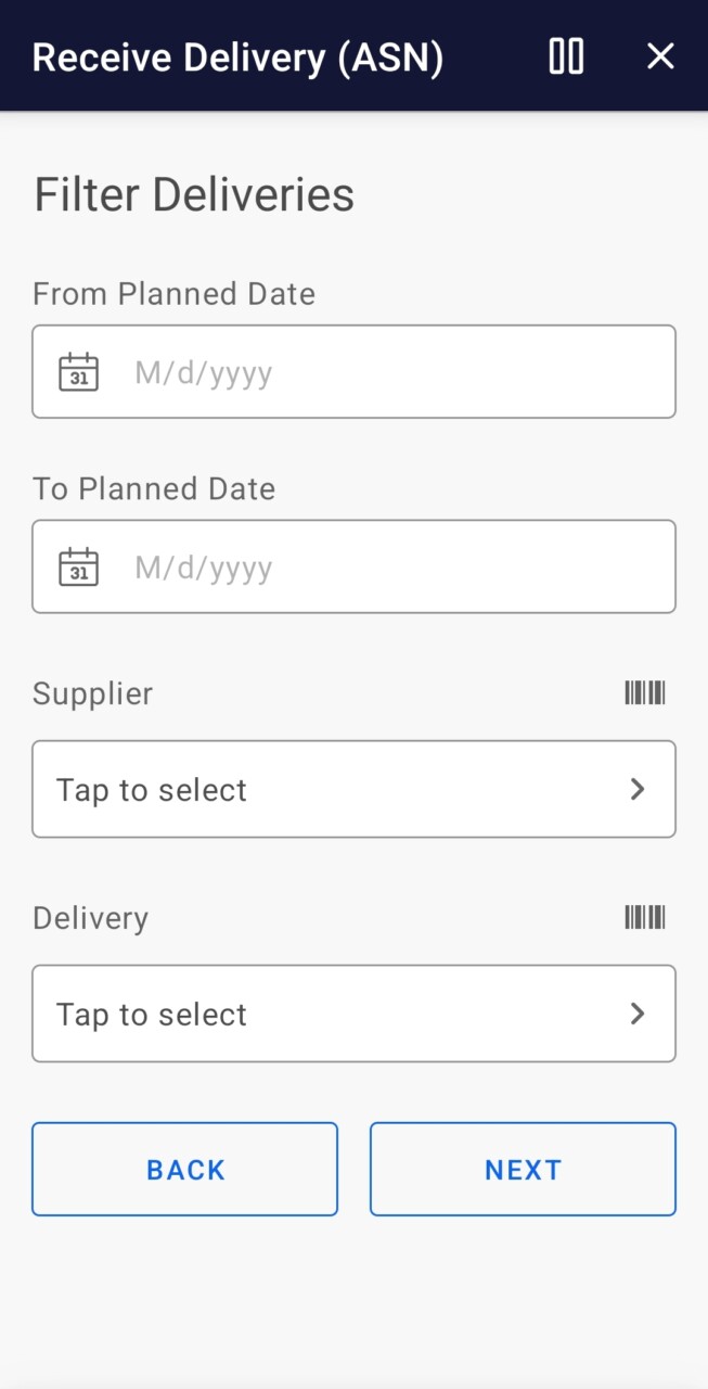 - Filter on From and To Planned Dates, Supplier and/or Delivery.
