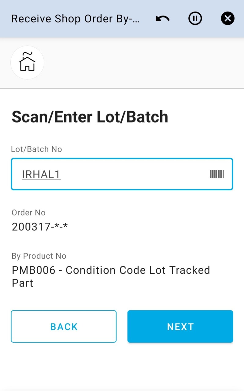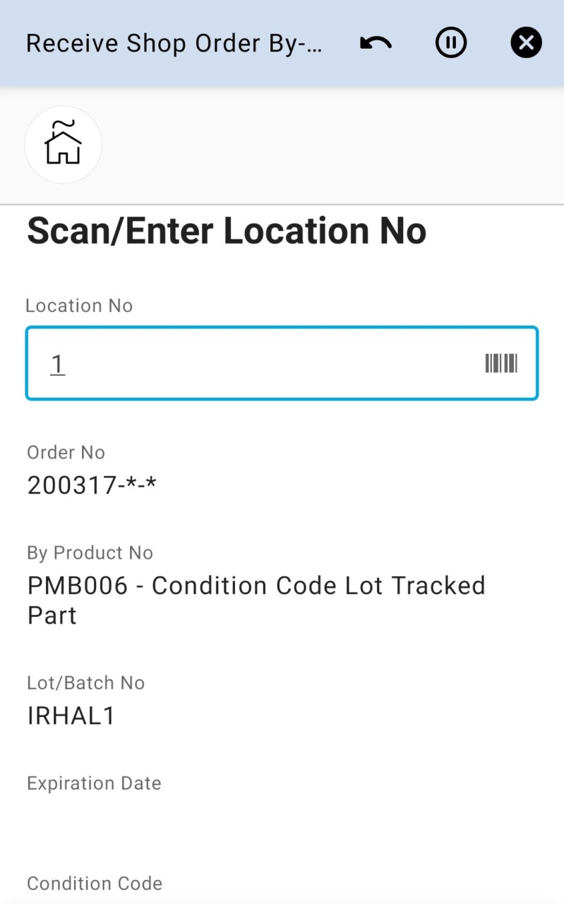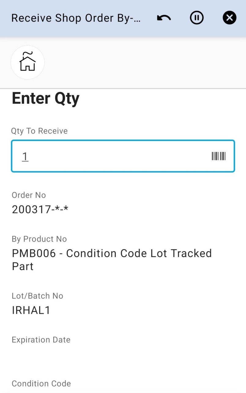 app can be used to receive By-Products from a Shop Order on the user’s default site.