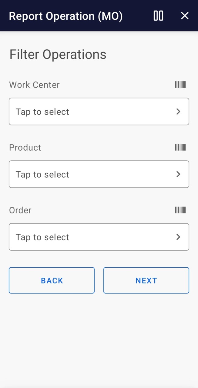 - Filter on Work Center, Product and/or Order.