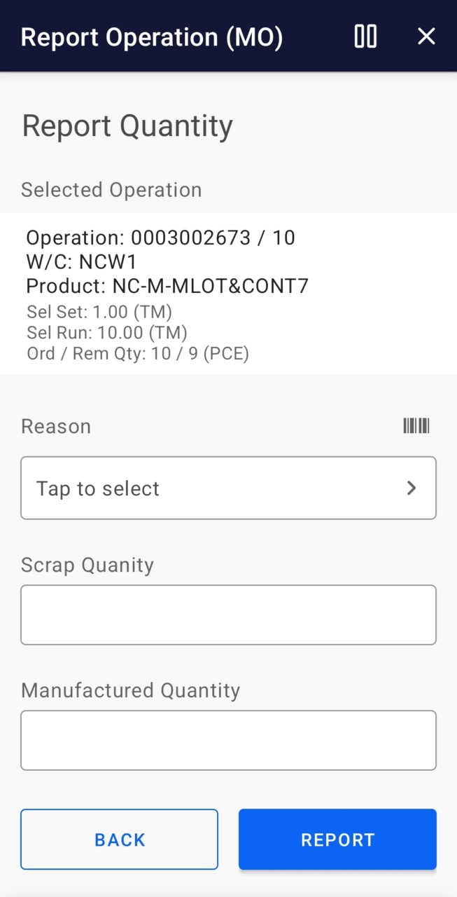 Report operational data of a manufacturing order. Features include: