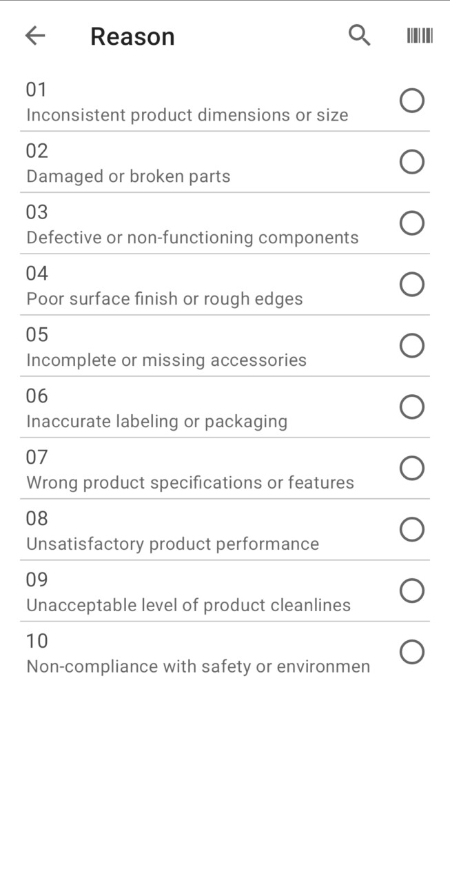 - Browse after reject reasons.