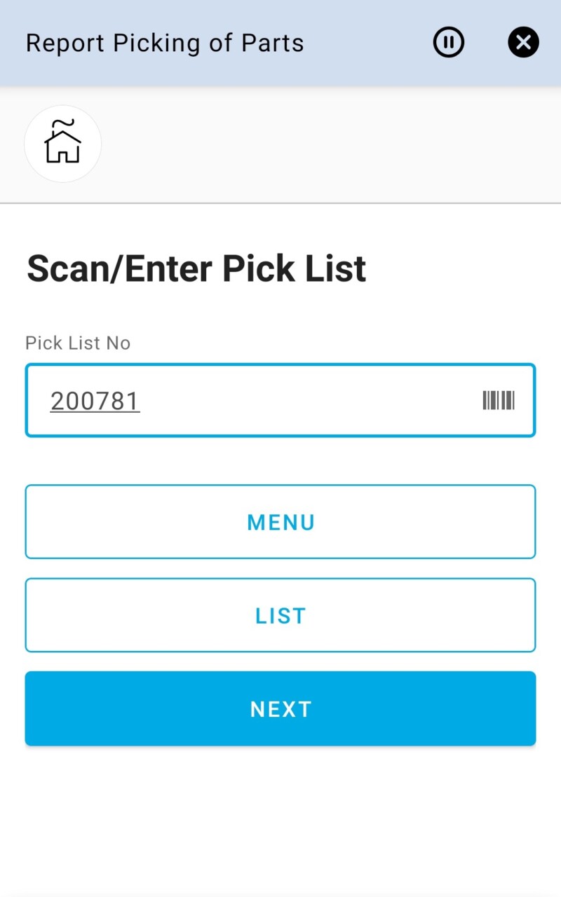 app can be used to report picking of parts for customer order/shipment on the user’s default site. You can also choose to release unpicked reservations if any.