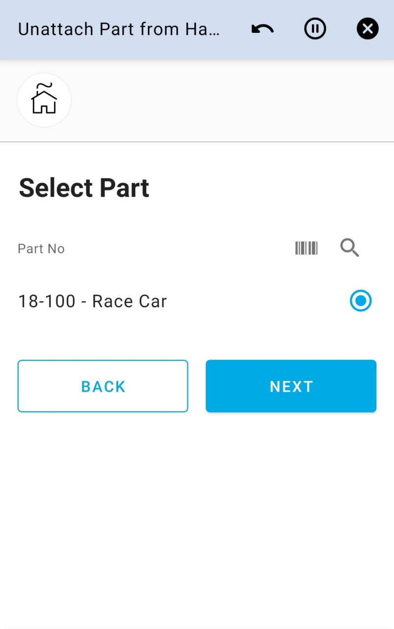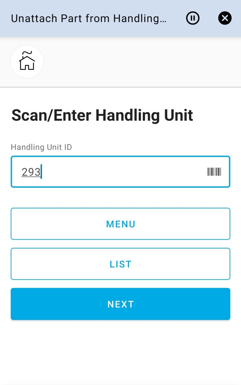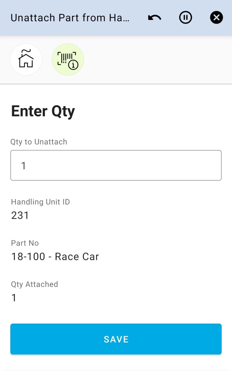 app can be used to unattach part and quantity from a handling unit on the user’s default site.