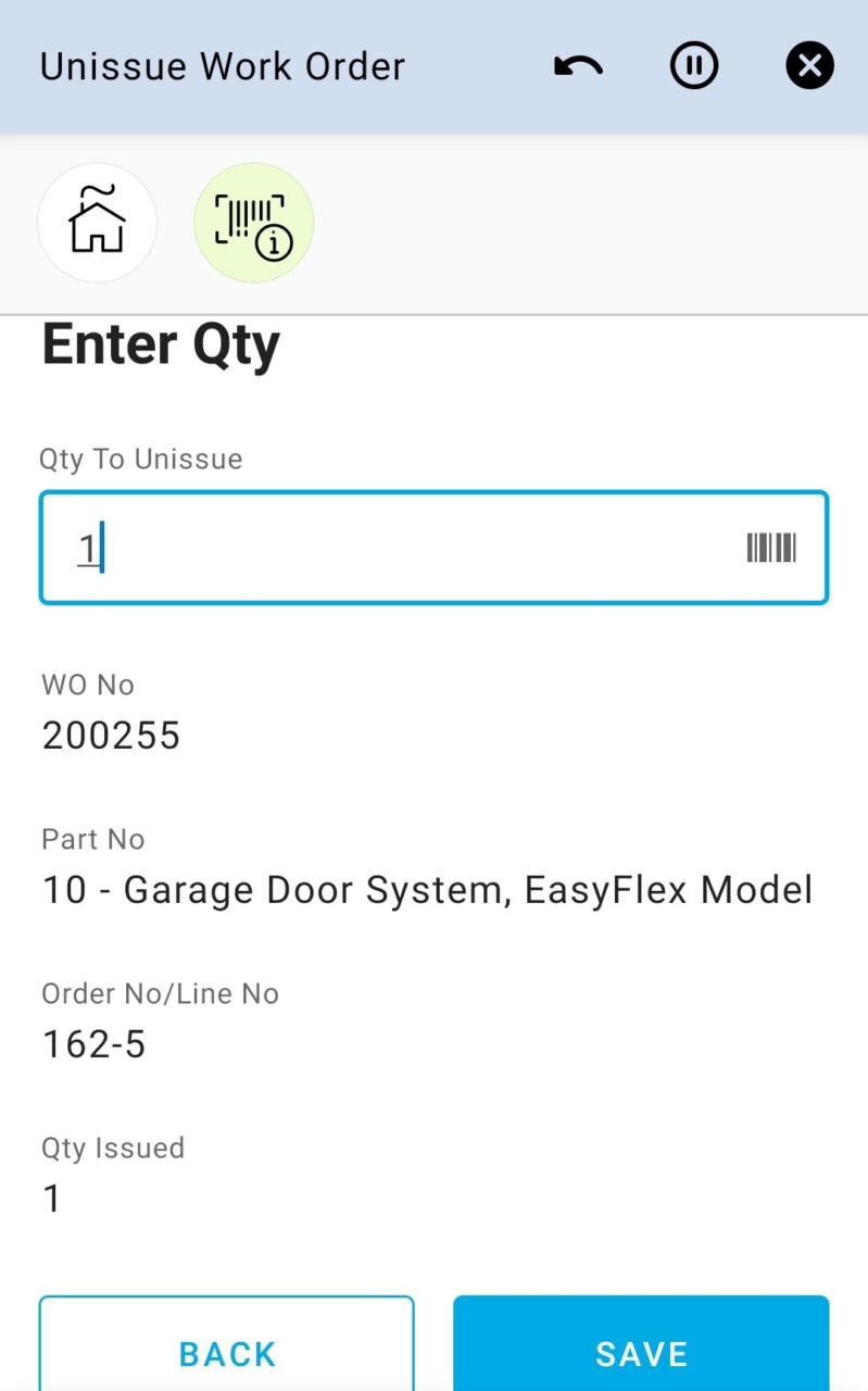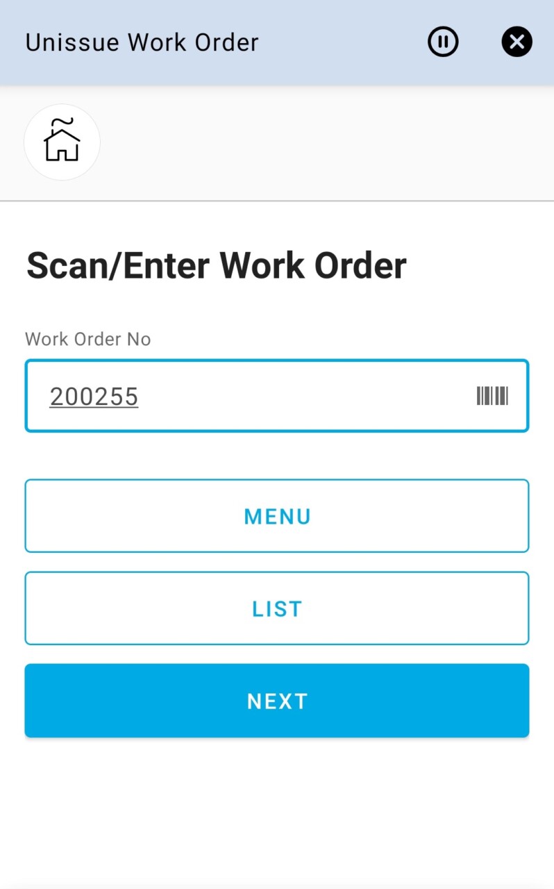 app can be used to unissue Work Order Material Requisition lines on the user’s default site.