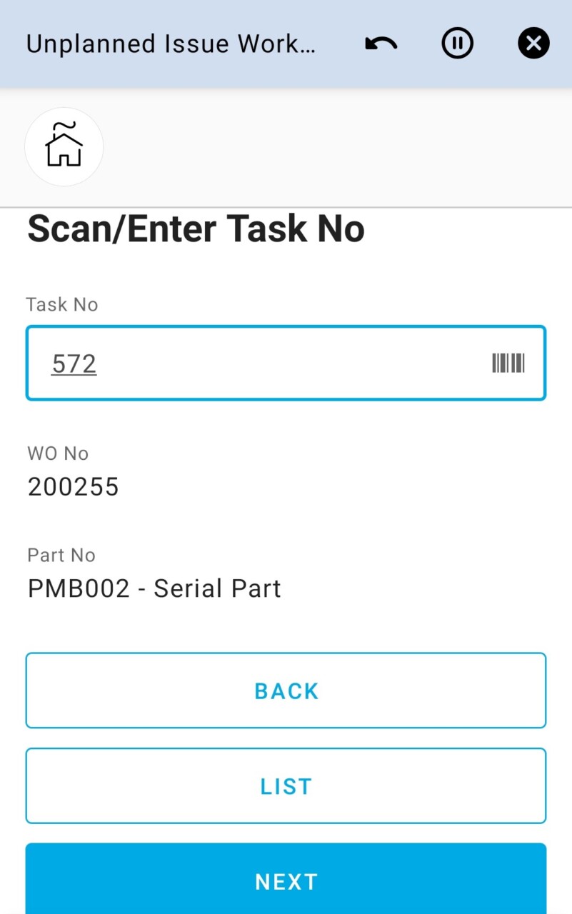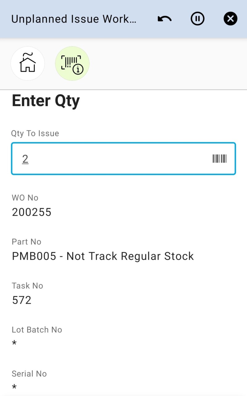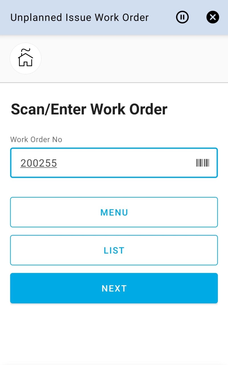 app can be used to issue material by creating new Material Requisition lines for Work Orders on the user’s default site.