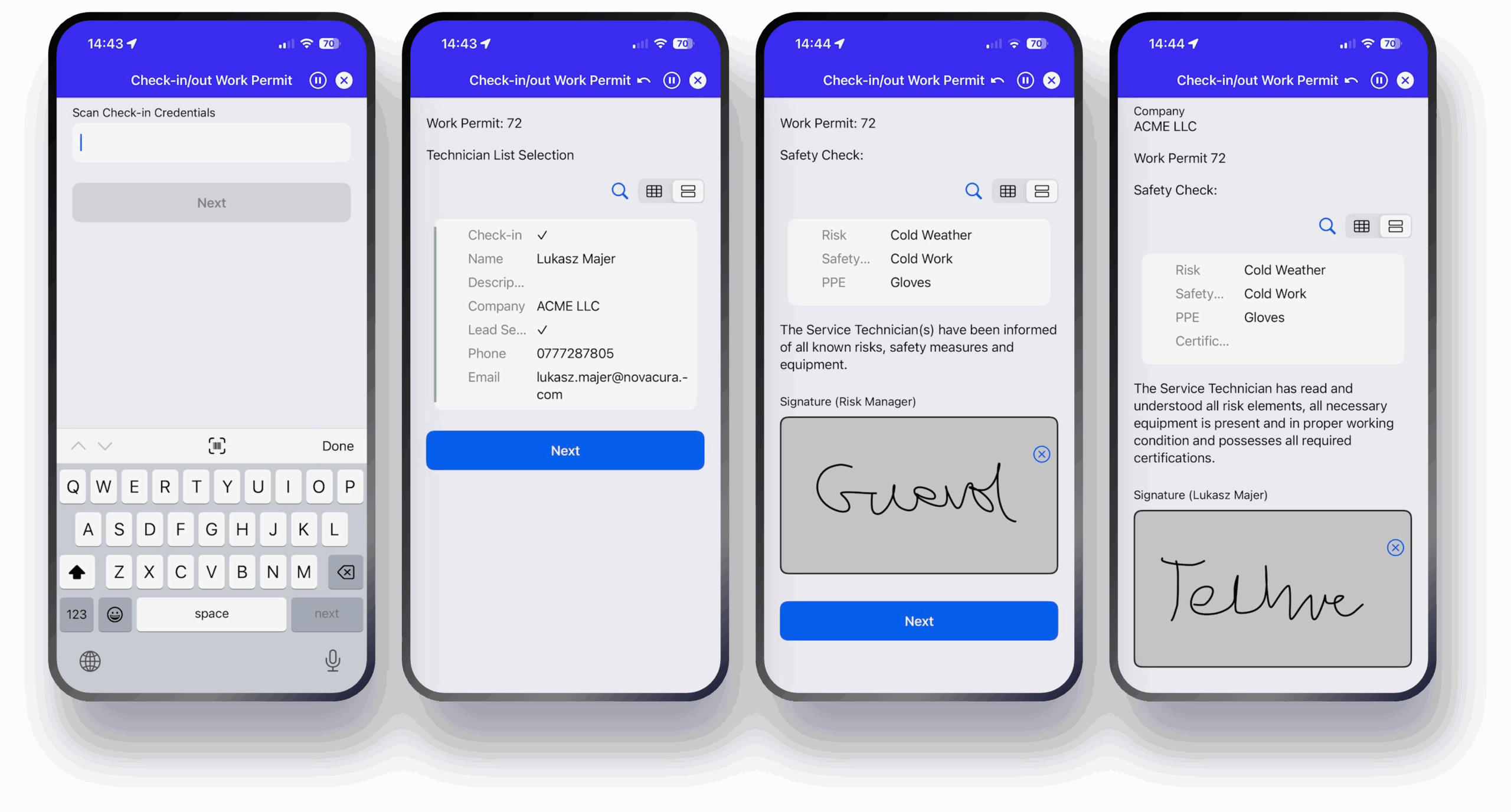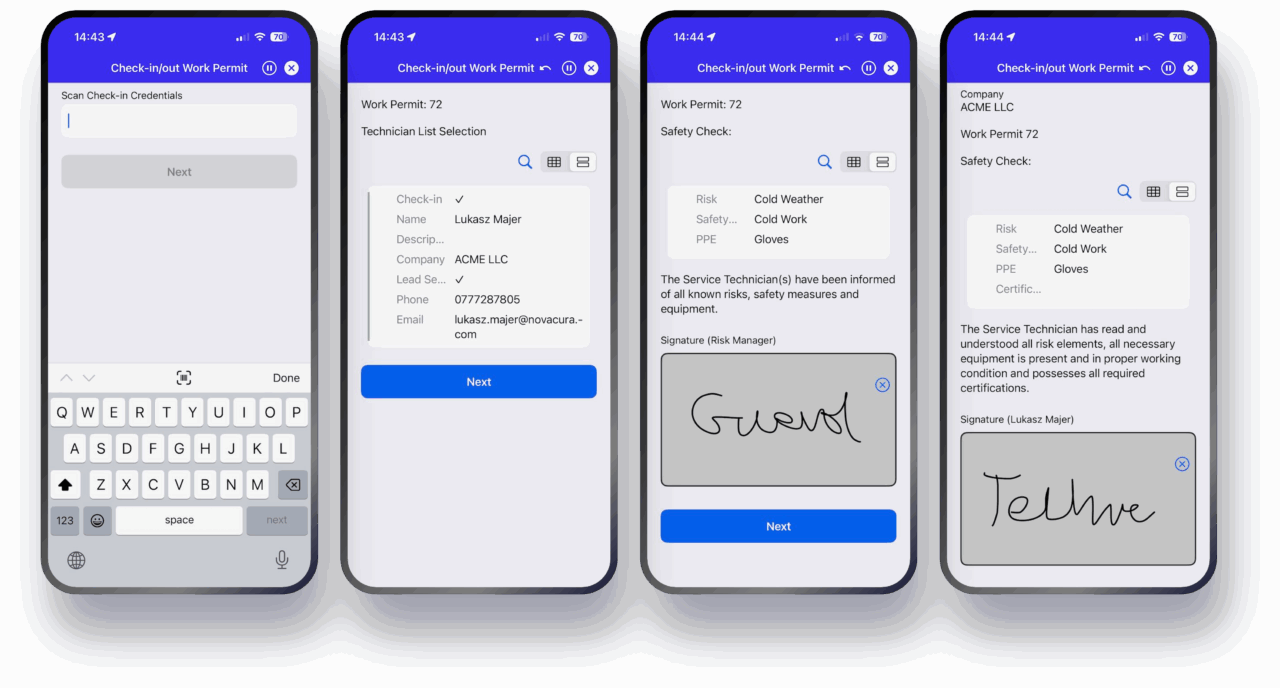 Through an intuitive Portal and mobile-enabled workflows, managers can create and manage work permits, assign service technicians, define schedules, and enforce risk mitigation requirements such as PPE, certifications, and safety measures. Service technicians use secure check-in credentials and QR codes to check in and out on-site, ensuring that only authorized and qualified personnel are performing work at any given time.